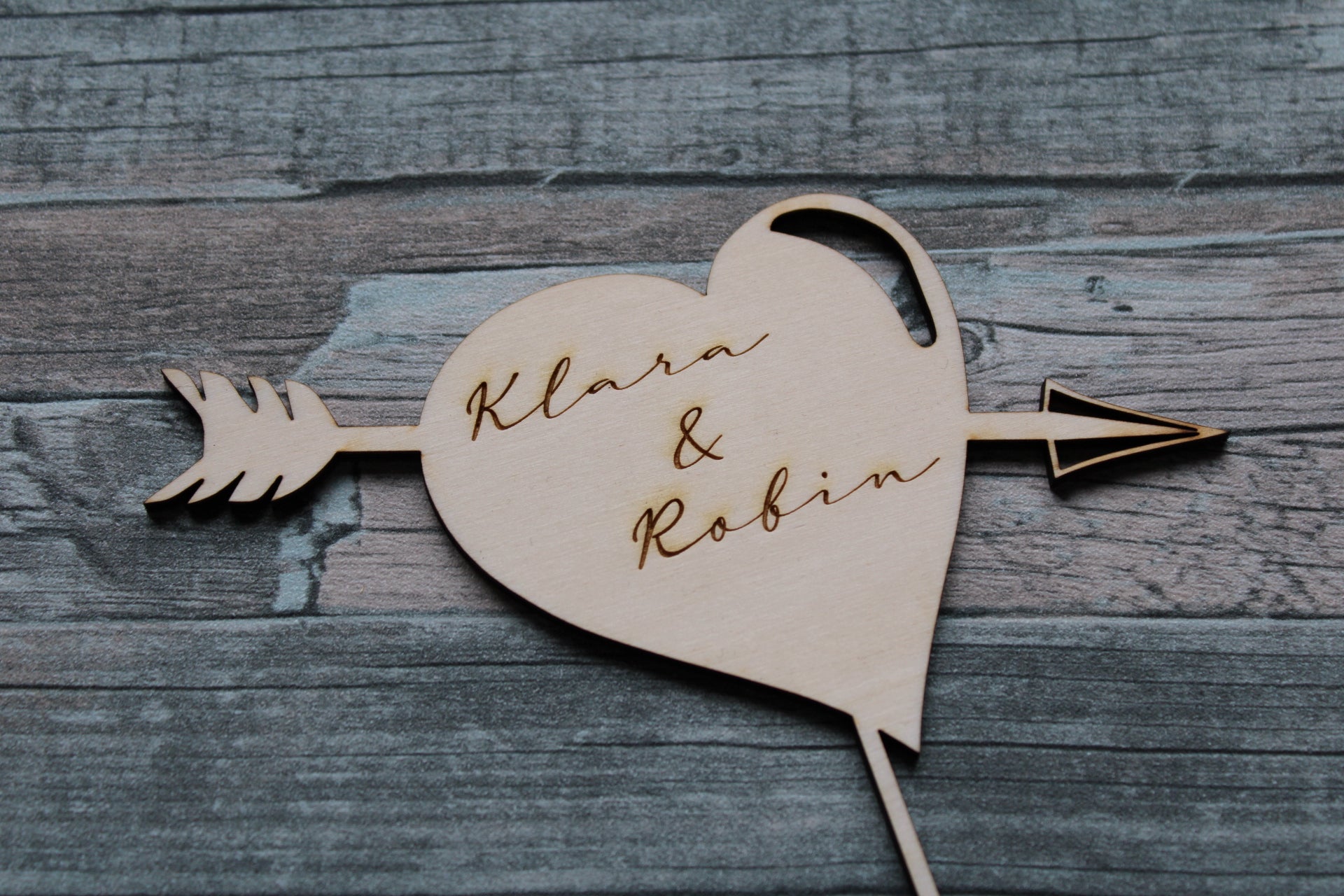 Dieser Caketopper eignet sich perfekt für die Hochzeitstorte. Eure zwei Namen werden in das Herz eingraviert. Andere Abmessungen sind auf Anfrage erhältlich.