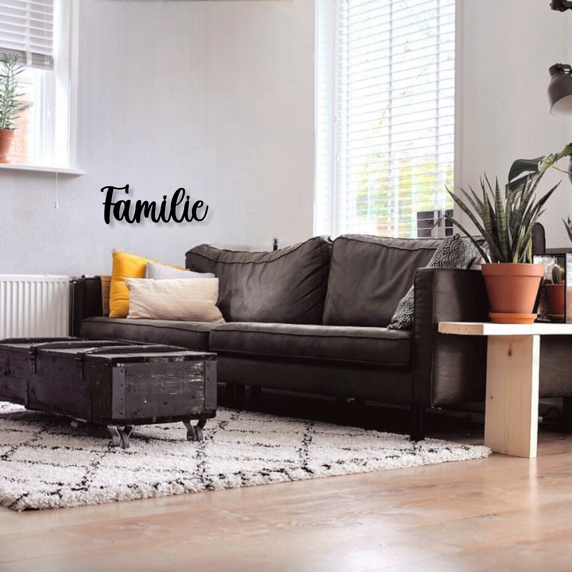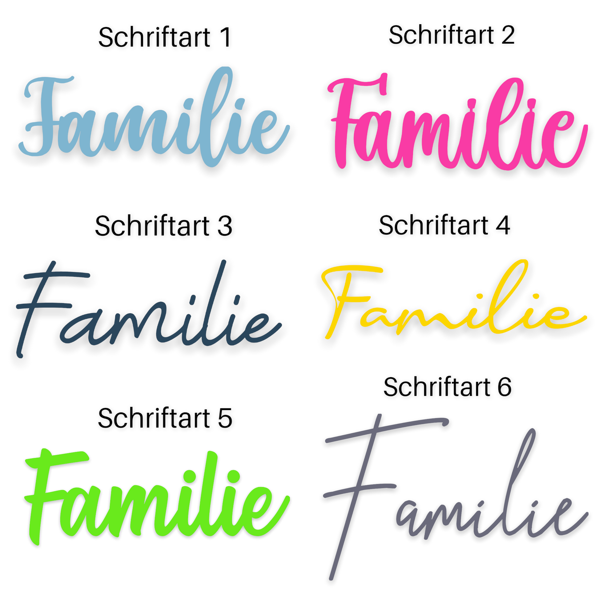 Schriftzug Familie aus Holz in verschiedenen Farben und 6 Schriftarten