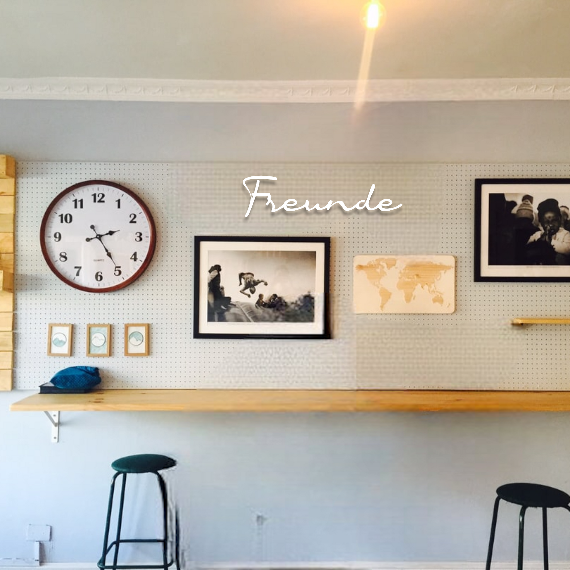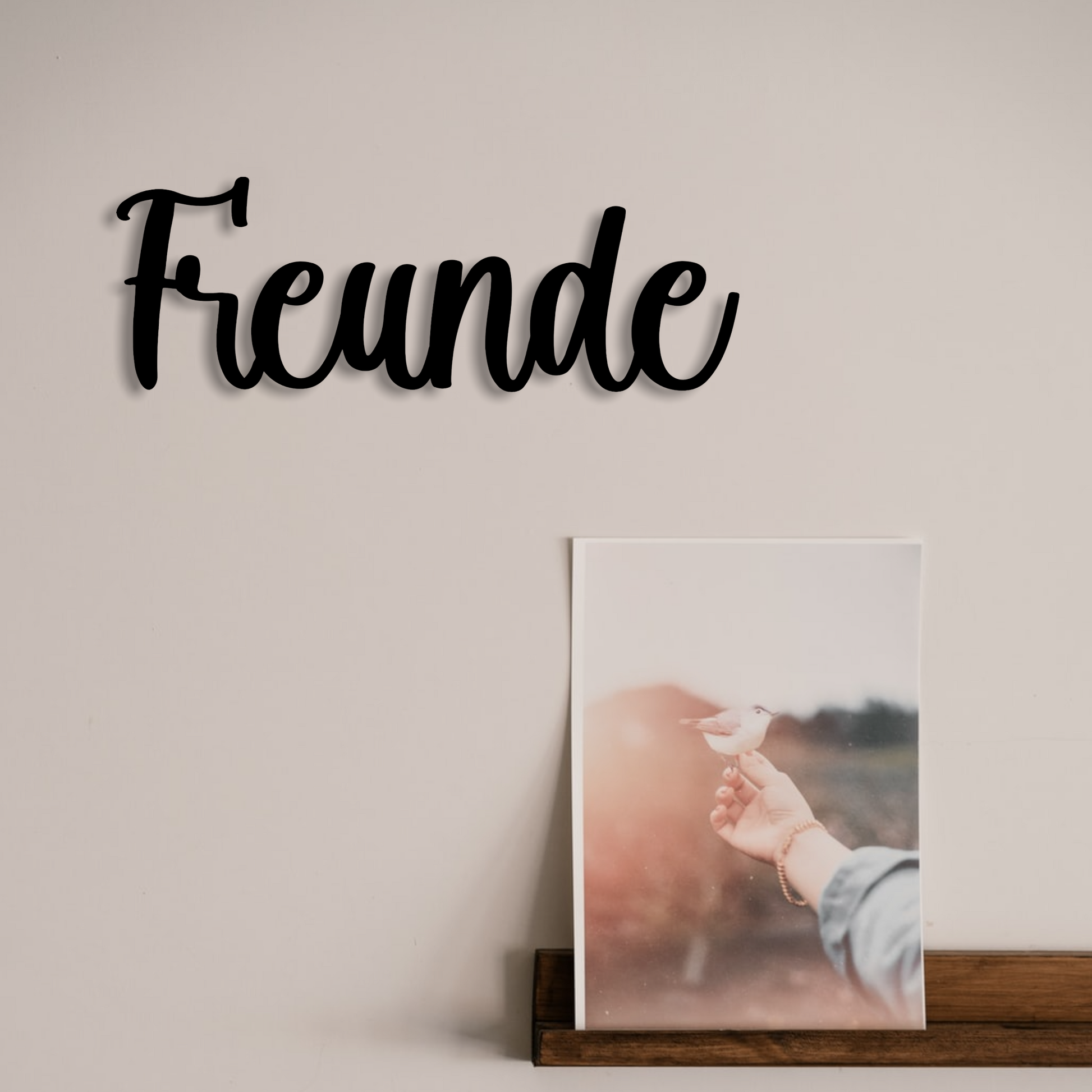 3D-Schriftzug "Freunde" aus Holz in verschiedenen Farben.