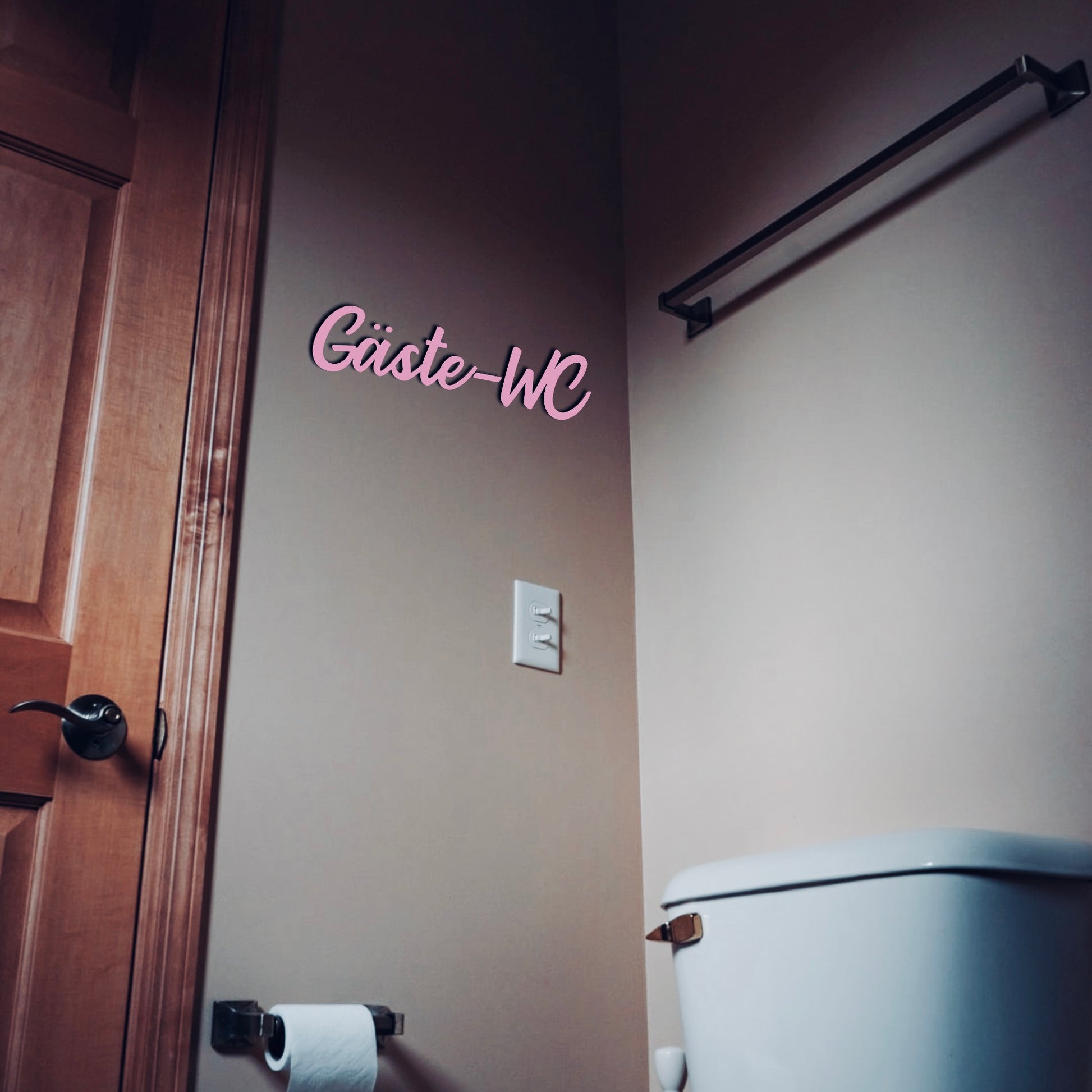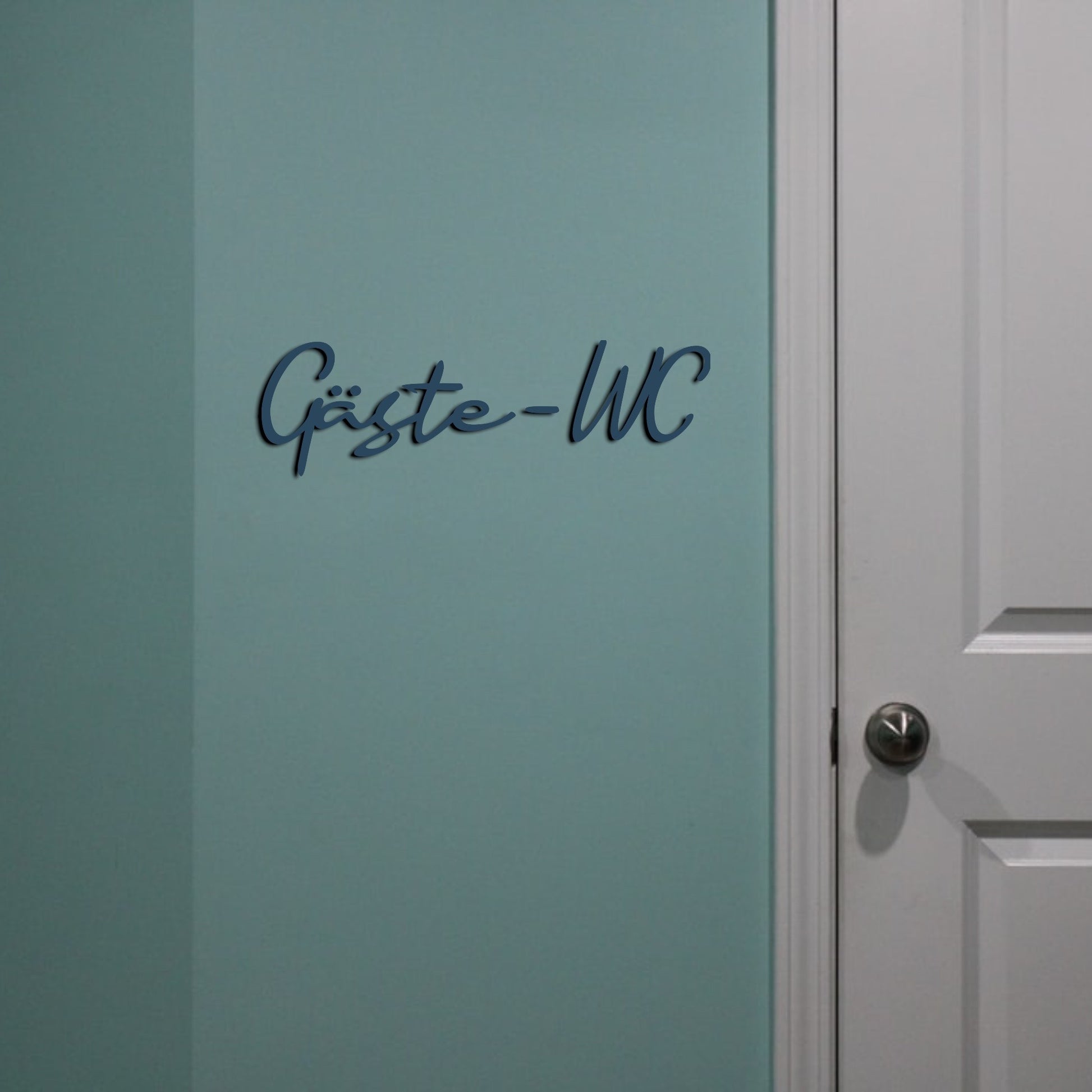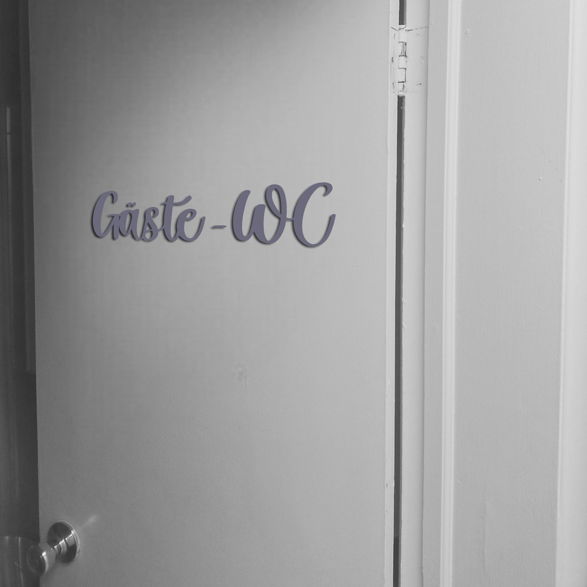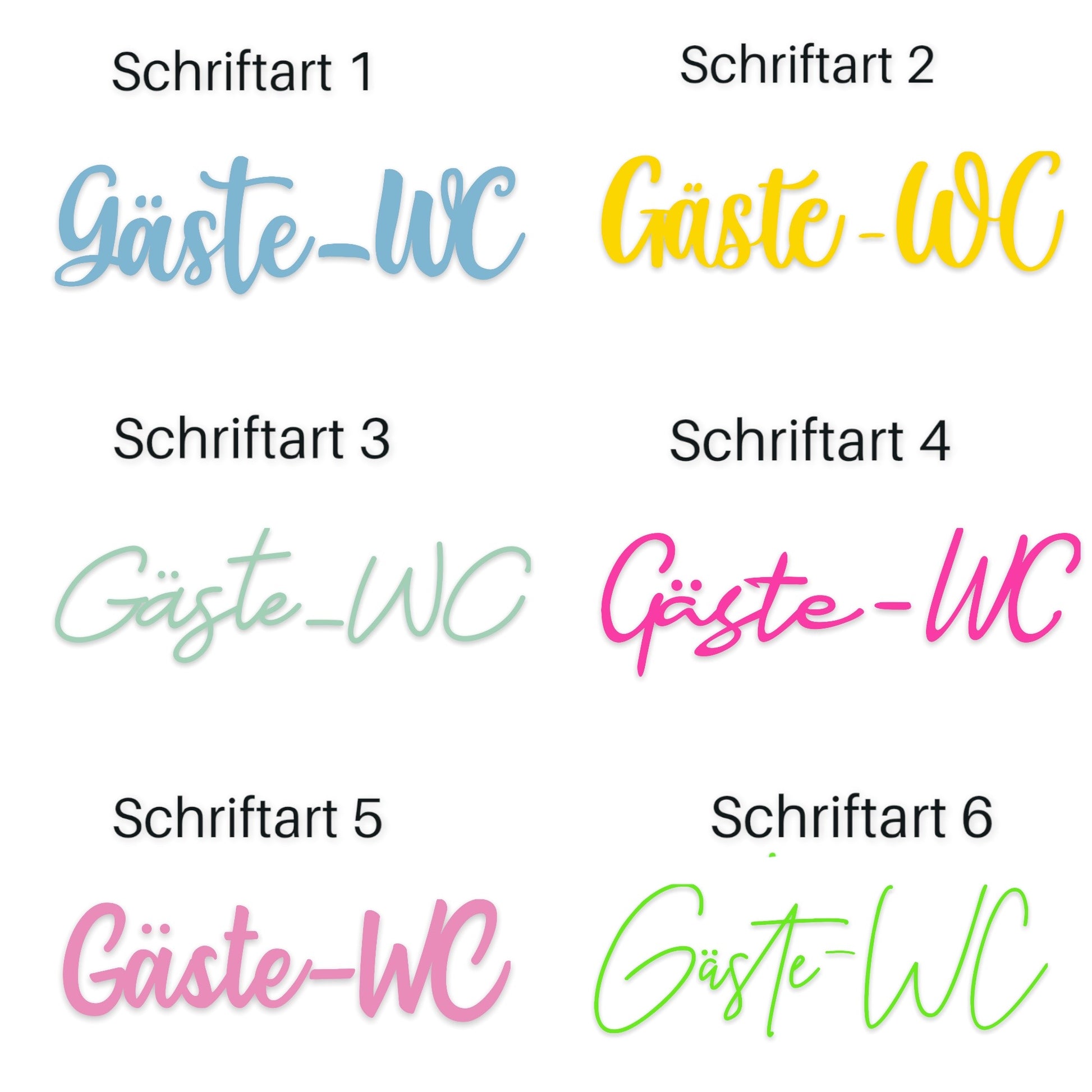Schriftzug Gäste-WC aus Holz in verschiedenen Farben und 6 Schriftarten