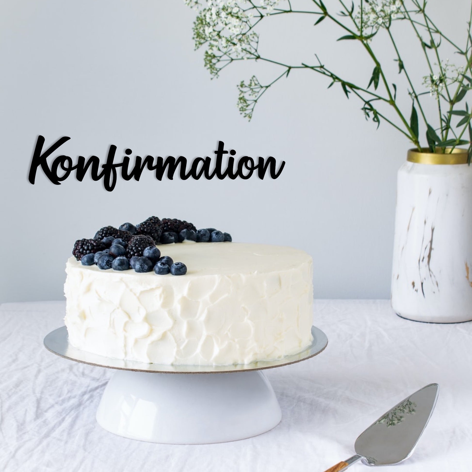 3D-Schriftzug "Konfirmation" aus Holz in verschiedenen Farben.