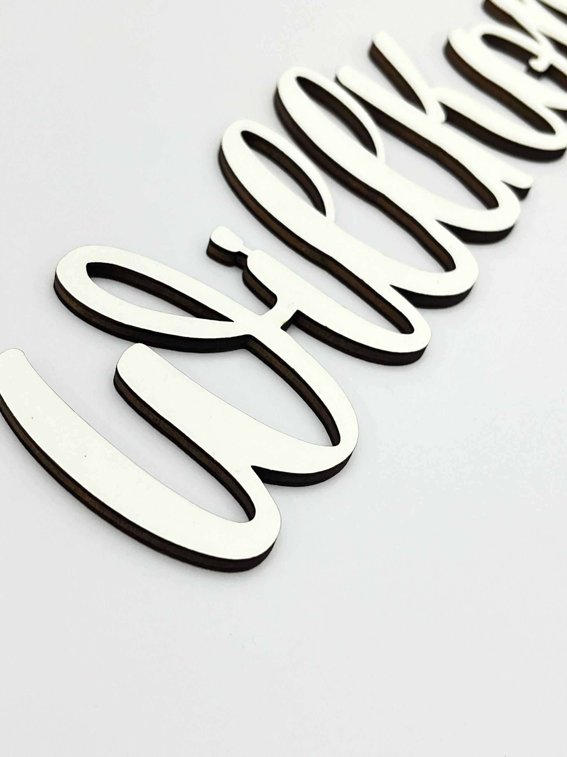 Schriftzug Willkommen aus Holz in verschiedenen Farben und 6 Schriftarten
