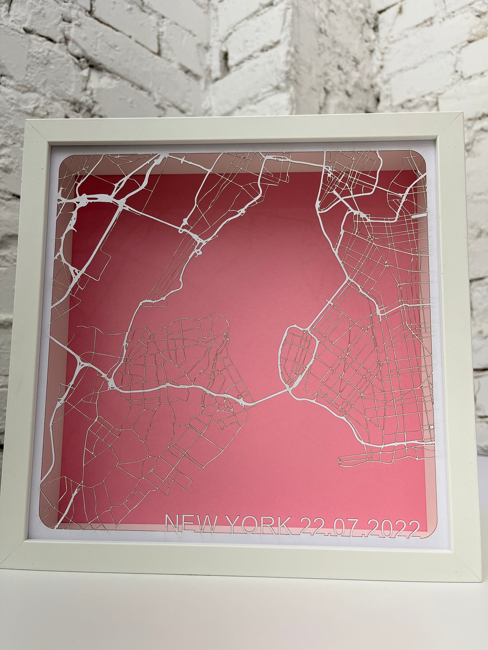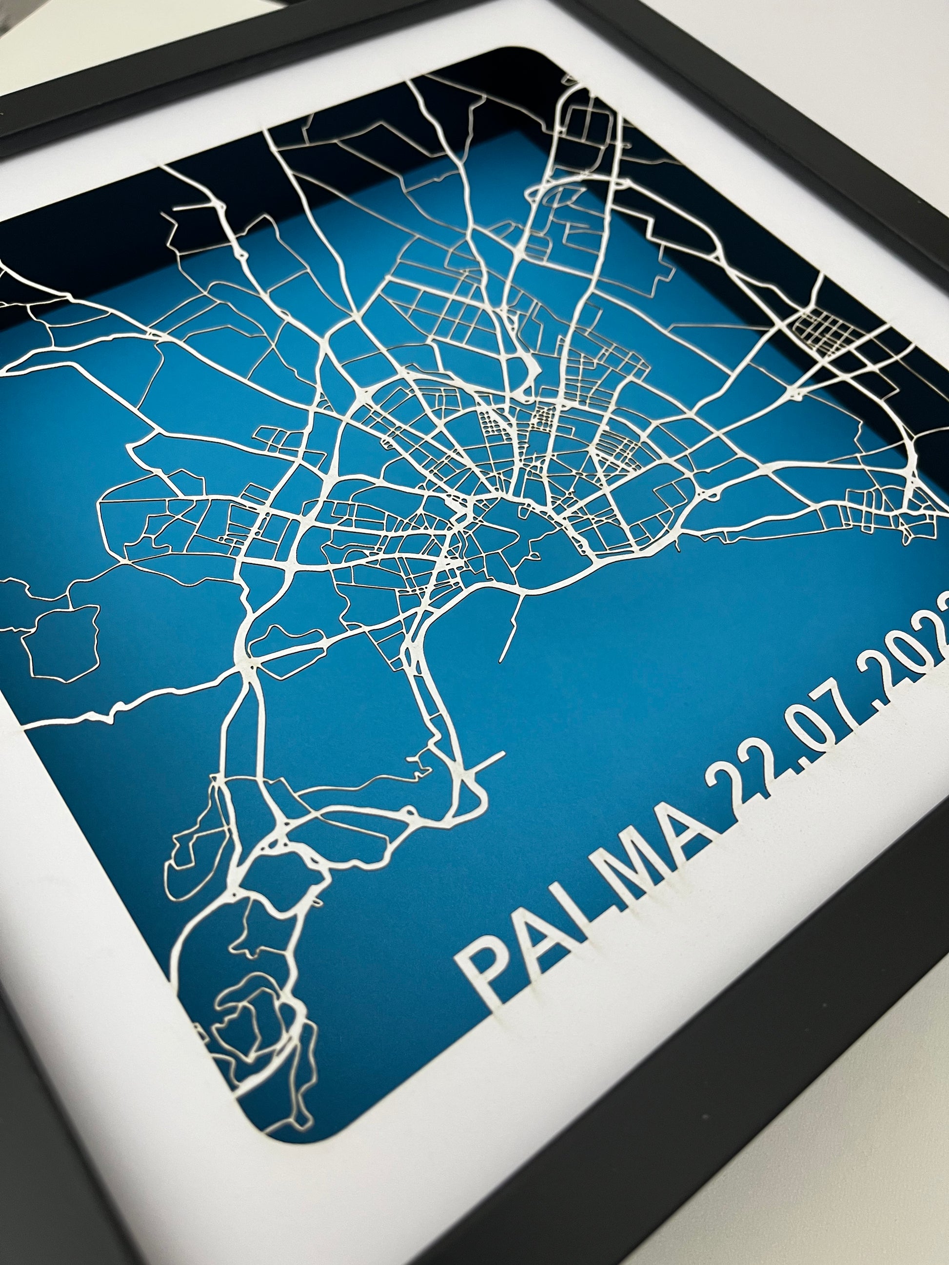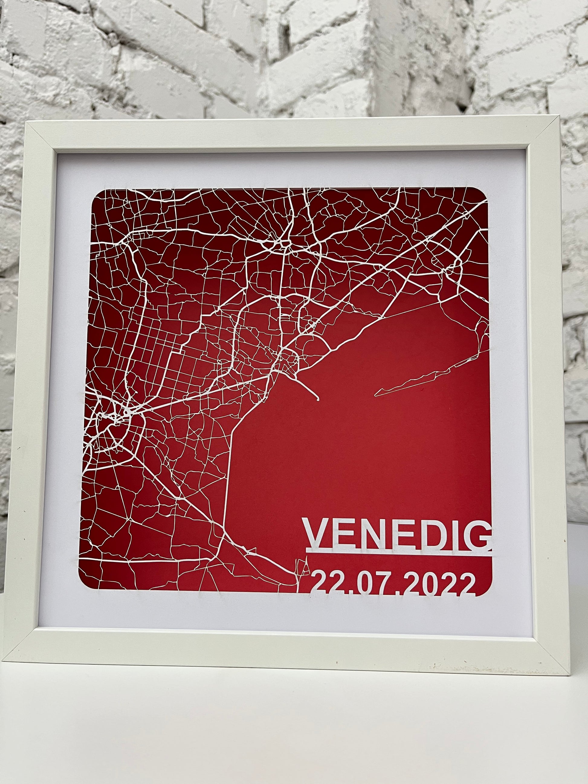 Dieser filigrane Stadtplan wird mit modernster Lasertechnik ausgeschnitten. Ein echter Hingucker und jeder wird sich dieses besondere Exemplar genauer anschauen.